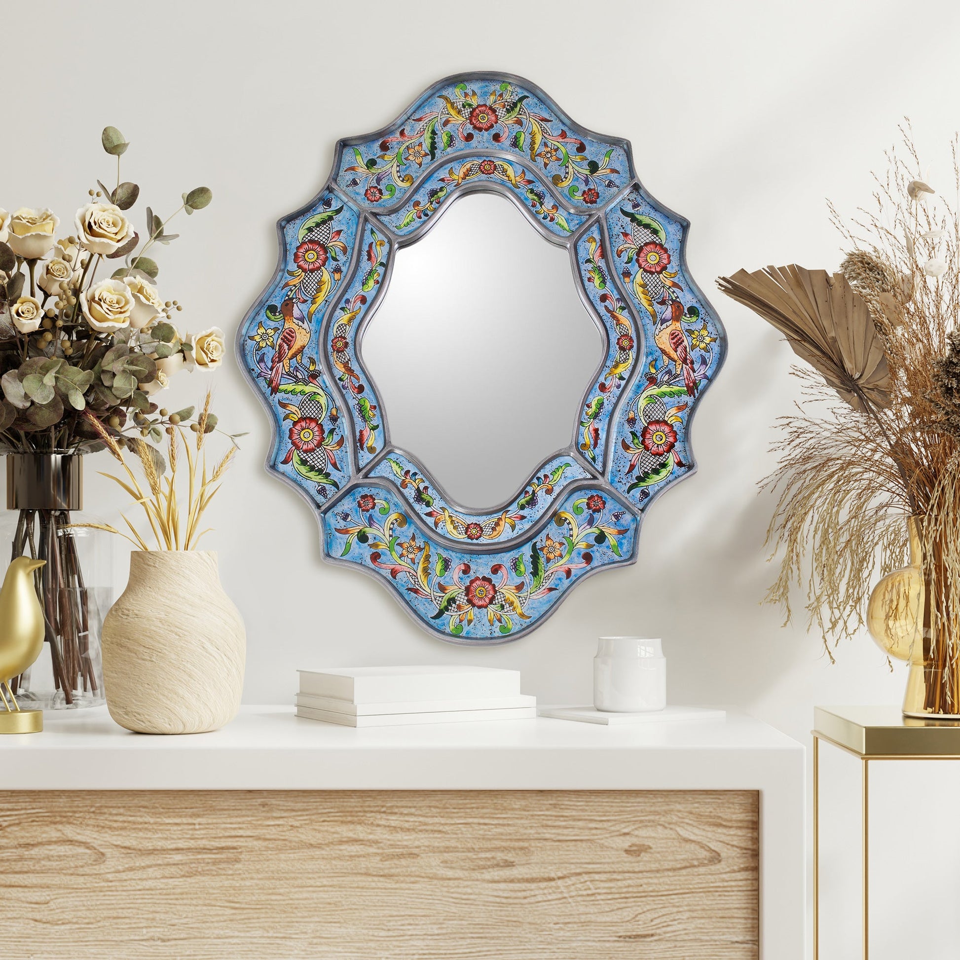 Artisan Made Reverse Painted Glass Wall Mirror - Blue Sky