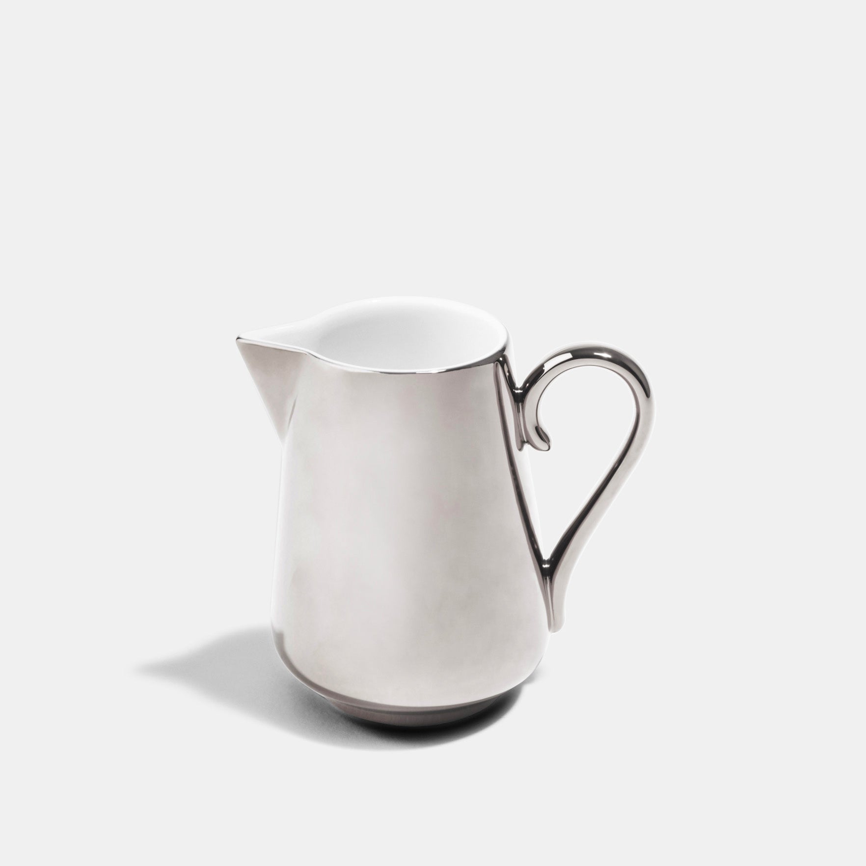 Our striking Platinum Reflect Milk Jug belongs to Richard's founding collection, Reflect. Once placed on the saucer below, is perfectly mirrors the saucer's patterns, making it seems as though the set have always belonged together. Pair with one of our hand-selected antique saucers for a contemporary twist or our Superstripe saucer for a bold statement.